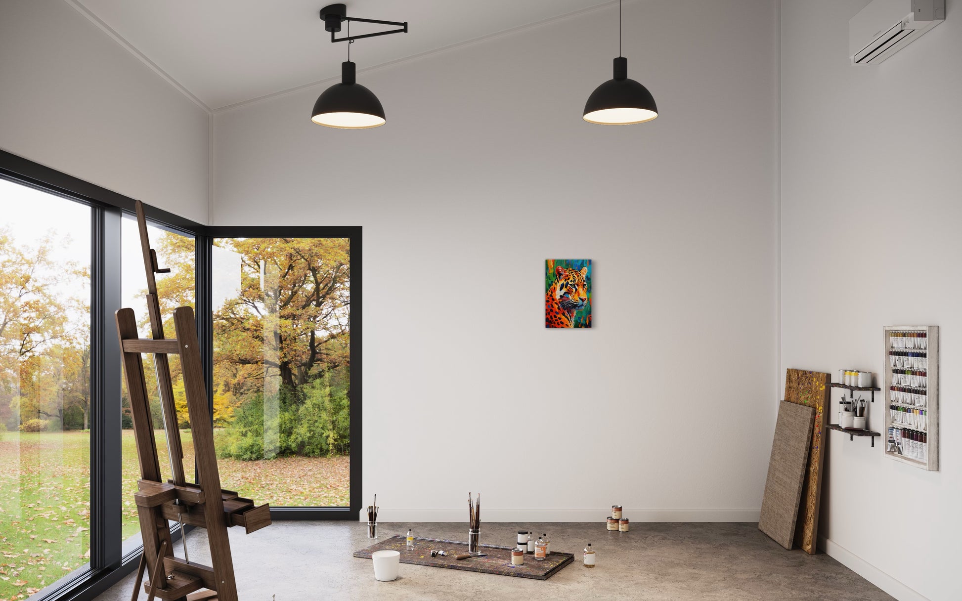 Tauchen Sie ein in die lebendige Welt der Kunst mit unserem atemberaubenden Gemälde "Jaguar from Amazon III", das in Ihrem Zuhause oder Büro einen Hauch von Wildnis und Abenteuer hinzufügt! Dieses beeindruckende Kunstwerk zeigt einen majestätischen Jaguar in leuchtenden, kontrastreichen Farben, die sofort ins Auge fallen und jedes Interieur aufwerten. Die expressive Farbpalette und die dynamische Pinselführung verleihen dem Bild eine moderne und zugleich zeitlose Ästhetik, die jeden Raum zum Strahlen bringt.