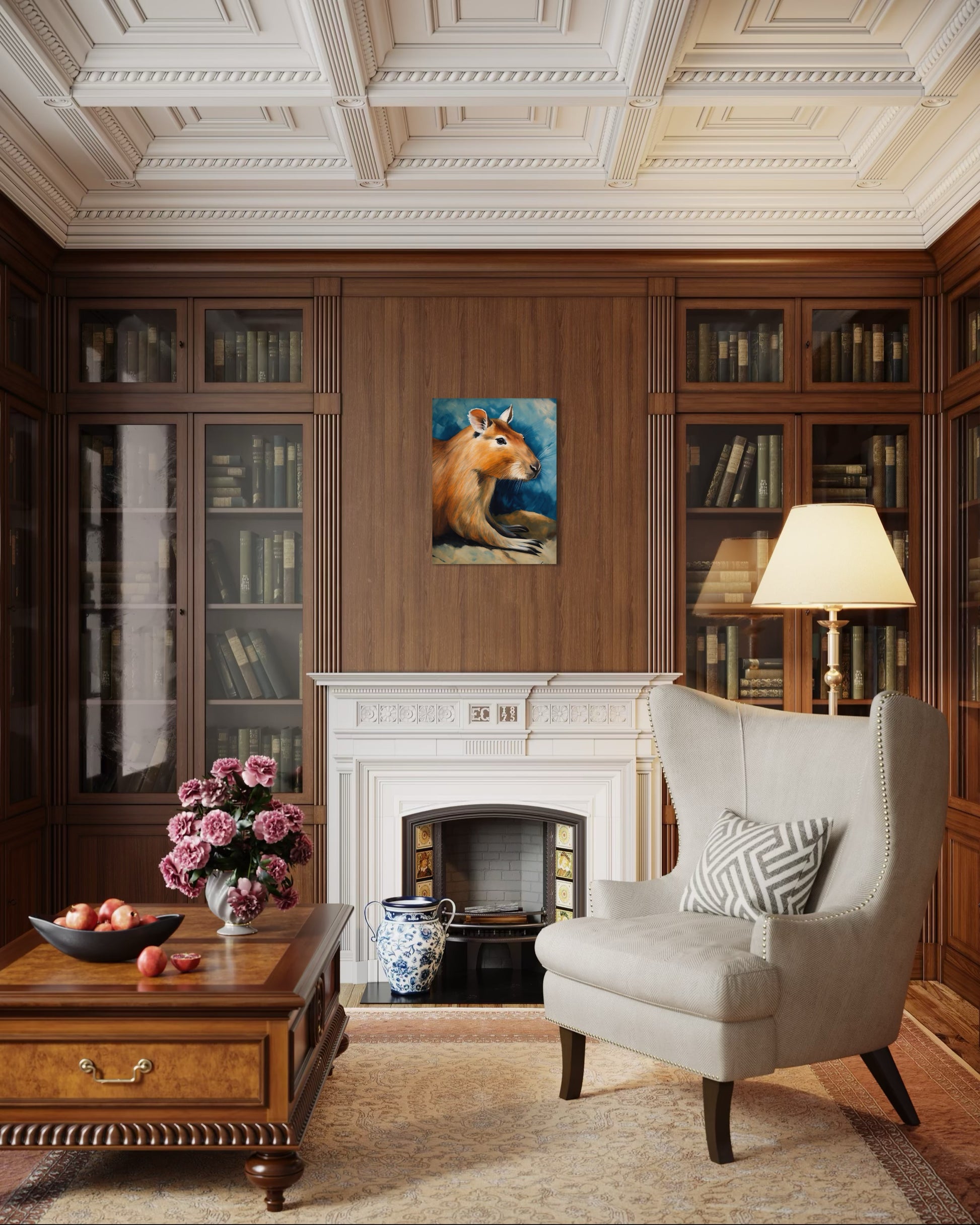 Entdecken Sie dieses atemberaubende Bild auf Leinwand mit dem Titel „The Capivara from Amazon.“. Dieses Kunstwerk nimmt Sie mit auf eine Reise in den Amazonas und zeigt die faszinierende Schönheit einer Capivara.