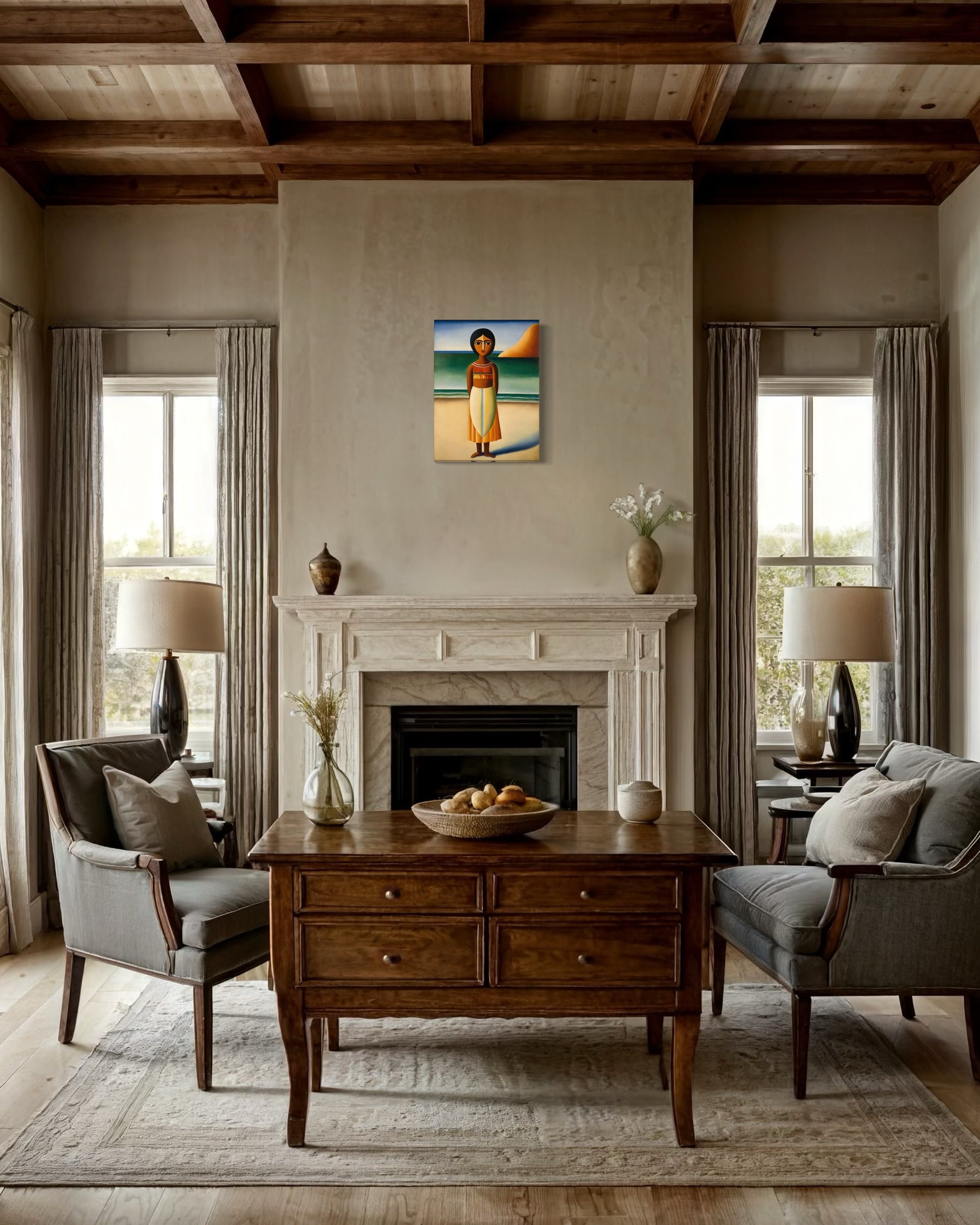 Das Werk „Índia Potira, die Blume des Strandes“ besitzt eine ruhige Ästhetik und eine tiefe Verbindung zur Natur und zur brasilianischen Kultur, was es ideal für verschiedene Umgebungen macht, in denen eine Atmosphäre von Ruhe und Inspiration gesucht wird. Hier sind einige Vorschläge: