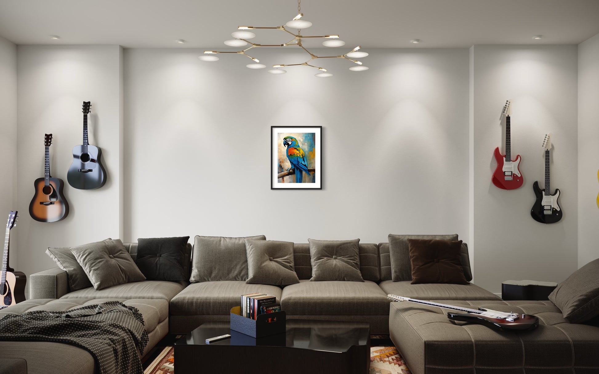 "Zé Manauara" ist nicht nur ein Dekobild, sondern eine lebendige Hommage an die üppige Schönheit des Amazonasgebiets. Im Zentrum dieses faszinierenden Kunstwerks steht Zé Manauara, ein prächtiger Papagei, der mit seinem leuchtend bunten Federkleid die Blicke auf sich zieht. Seine Federn schillern in allen Farben des Regenbogens, wobei besonders das lebendige Grün, das tiefblaue und strahlende Rot hervorstechen.